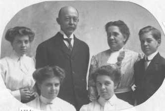 12 Eighth St., New Bedford. (That's Rufus and Susan Soule's house.) Here are my guesses: Alex Smith, Garry Jr, man, Maggie, Dorris, Rufus Soule, girl, Lois Soule Smith, man, girl, boy, Susan Nesmith Soule, man, woman, Hilda. The 3 children near the back are most likely Katharine Hough, and Bill and Katharine Smith. |